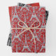 Eiffel Towers and Flowers Red and Black Wrapping Paper Sheet