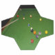 Pictured is a Eight Ball table with traditional numbered eight balls and pool cues
