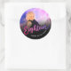 Eighteen 18th Birthday photo purple pink black Classic Round Sticker