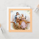 Lovely couple Marie Antoinette French style in a garden. Pretty for weddings, engagements, showers and such. In eighteenth century style dress and sitting on a garden fence. You may change the colour of the background on front and back. If you need help with personalising contact Greer at greerdesign@aol.com
