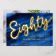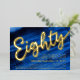 Eighty abstract sapphire blue art background with a gold foil text or your own foil colour. Personalise this 80th birthday party script art milestone birthday invitation with your own birthday party event details, and a photos of your birthday girl on the reverse. Other years, colours and matching items are available. © Original design by Sarah Trett for www.mylittleeden.com on Zazzle.