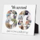 Commemorate your eighty years of marriage with our Eighty-Year Wedding Anniversary Photo Collage Tabletop Plaque with Easel. This elegant collage beautifully arranges 16 cherished photos in the shape of a number "80", allowing you to relive the special moments from each month of your journey as a married couple. Expertly printed on premium-quality material, the collage is designed with a sleek built-in easel for easy display on any tabletop or shelf. There is text that reads " We survived 80 years and our love is still strong". If you like, you can personalise this text with your own message instead.