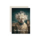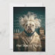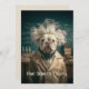 A charming French bulldog dressed as a quirky scientist, complete with wild white hair and a lab coat, posed in front of a chalkboard filled with equations. The perfect blend of cute and clever, ideal for pet lovers and science fans alike.