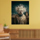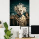 A charming French bulldog dressed as a quirky scientist, complete with wild white hair and a lab coat, posed in front of a chalkboard filled with equations. The perfect blend of cute and clever, ideal for pet lovers and science fans alike.
