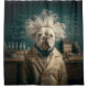 A charming French bulldog dressed as a quirky scientist, complete with wild white hair and a lab coat, posed in front of a chalkboard filled with equations. The perfect blend of cute and clever, ideal for pet lovers and science fans alike.