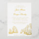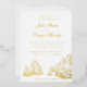 This destination wedding invitation features a drawing of the famous arch at Lands End in Cabo San Lucas, Mexico at the tip of the Baja peninsula. . All the important wedding details can be personalized. Colors include a golden sepia two tone graphic with coordinating text. Both the illustration and the text are in gold foil on a white background.
