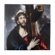 El Greco Christ Carrying The Cross tile. Oil Painting on Canvas 1578. El Greco created some of the most famous paintings of Jesus. Christ Carrying the Cross is one of the most recognised Christian paintings in the world. The artist depicts Christ wearing a blue and red robe with his head adorned with a crown of thorns. The cross is hoisted over his left shoulders as clouds break in the background. A great gift for fans of El Greco, Jesus Christ, Easter, catholic art, and religious paintings.