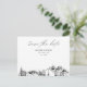 Modern El Paso black and white save-the-date postcard invitation on matte paper. The front showcases a stunning sketch, setting the perfect tone for your wedding day. Add customise the text to make it your own. Enter the Zazzle design tool for additional design customisations. Automatically comes on matte paper. Adjust to semi-gloss if you prefer.