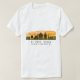 T-shirt features El Paso Texas city skyline silhouette with sunset watercolor splash and latitude & longitude map coordinates
