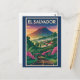 El Salvador Volcano Illustration Travel Art Vintag Postcard