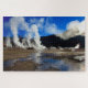 El Tatio is a geyser field located within the Andes Mountains of northern Chile at 4,320 metres above mean sea level. Its name comes from the Quechua word for oven. It is among the highest-elevation geyser fields in the world. El Tatio has over 80 active geysers, making it the largest geyser field in the southern hemisphere and the third largest in the world. Its geysers erupt to an average height of about 75 centimetres, with the highest eruption observed being around 6 metres.