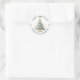 Elegant Christmas sticker with an ornate Victorian tree in blue on a white background. Stickers make Christmas wrapping good looking and easy to do!