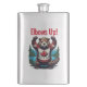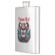 The product is a good size and came exactly as it was pictured. The lid is not attached to the flask, which could be dangerous on drunken nights... The print came out surprisingly well and looks very sharp. Would definitely recommend.