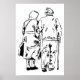 Simple black line illustration of an elderly couple walking along together. The background area is completely transparent so that you can easily customize and choose your own background colour. Image available on various gifts and products.