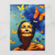 AI generated art of an elderly woman surrounded by butterflies in shades of yellow and orange