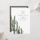 This save the date invitation features watercolor saguaro cacti and a modern, minimalist design. Easily edit all wording to meet the needs of your event. Use the photo backside to add your picture and wedding website for a personal touch.
