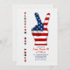 Celebrate our freedom, our democracy, your pride in America with this election night invitation featuring a hand in a "V" sign with the American flag overlay. The card is easy to customise with your wording, font, font colour, paper shape options and choice of six paper types.
