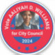 The 2024 local election custom photo campaign template for a classic round sticker is designed to be a versatile and visually striking tool for political promotion. The sticker features a concentric circle design, with the outermost band adorned in a rich red that signifies energy and action. This band is meant to contain the slogan or call to action, such as "Vote" or "Support," followed by the candidate’s name in bold, white, capitalised font for standout contrast.