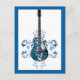 ELECTRIC BLUE GRUNGE SWIRL VECTORS GUITAR MUSIC IN POSTCARD