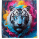 This striking shower curtain features a stunning portrait of a snow tiger illustrated in electric blue and white neon hues. The vivid colours create a mesmerizing effect, showcasing the tiger's fierce beauty and captivating gaze. The bold design adds a modern touch to any bathroom, making it a focal point that brings a sense of wild elegance to your space. This artistic representation captures the essence of the majestic snow tiger, transforming your bathroom into a unique and stylish retreat.