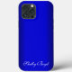 Solid bright blue almost electric look with white text for name. Looks great with name or you can delete the text to leave it blank