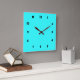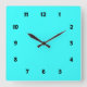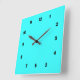 Minimal electric blue wall clock with numbers in a cartoonish font.