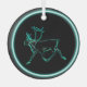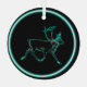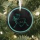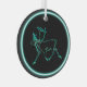 Inspired by the Northern Lights, the glowing blue green outline of a caribou (Rangifer tarandus), also known as a reindeer, on a black background.