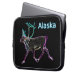 A bright, neon-like rendering of a caribou, also known as a reindeer. Text reading "Alaska" also appears in glowing blue and white. Inspired by the Northern Lights. This design won a Best of Day award.