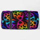 This image features a duffel bag adorned with a striking and stylised leopard print pattern. The spots are filled with a vibrant, gradient-like texture that mimics the appearance of colourful fur or threads, transitioning through shades of pink, purple, blue, green, and yellow/orange. These vivid colours stand out dramatically against a solid black background. Black carrying straps are prominent across the top. The design gives the bag a dynamic, modern, and artistic feel, making it a bold accessory for travel or everyday use.