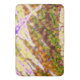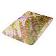 The original abstract artwork by ZoeSPEAK on this large Bath Mat began as an original photograph of a palm frond. The colourful pattern looks almost like splashed paint. The organic shapes are outlined in bright lime green, some filled with violet purple and creamy yellow. There’s a hint of shapes in red, and the background is made up of shades of warm brown. With its electric green slide of colour, this organic pattern from nature makes a bold, modern statement.