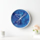 Electric Guitar Outline Blue Paint Splats Wall Clock
