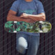 Bright unique photo art with abstract textured graphic elements and stripes.