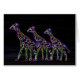 Graphic illustration of giraffes with glowing neon coloured edges.