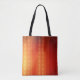 Futuristic design of orange dots running vertically on a tote bag. Text can be added at your discretion.