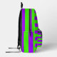 Backpack all over print cut sew style storage bag printed with Electric Psychedelic Purple And Harlequin Green horizon and vertical line stripes artwork design illustration by TheFabricSeal at Zazzle.com #Zazzle Made https://www.zazzle.com/store/thefabricseal.
