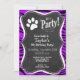 Electric Purple Zebra Stripes; Paw Print Invitation