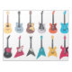 Flat Guitars Electric rock guitar, acoustic jazz and metal strings music instruments flat illustration set