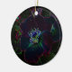 What a dramatic pattern this holiday ornament has! This electric rose is outlined in deep, rich colours of red, blue, magenta, yellow, green and purple. The black background adds to the magical, mysterious feeling. Won't this look beautiful hanging from your Christmas tree?