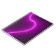 This awesome notebook.features .a fractal image that resembles an arc of bright purple electricity. The black background is lit by the intensity of the purple curve.