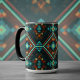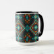A bright, repeating diamond pattern with turquoise, red, blue and orange accents, creating an electric visual effect.