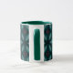 Turn up the energy on your daily coffee ritual with this electrifying teal and magenta kaleidoscope mug. Radiating petal shapes and dotted leaf motifs pulse outward from the centre in a hypnotic, high-contrast pattern. The combination of vibrant teal, hot pink, and dark geometric lines creates a futuristic feel, while the deep green interior and handle add a lush, bold finish. This mug is a great choice for creatives, night owls, or anyone who loves vivid, expressive design with a modern twist.