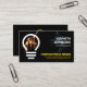In the dark of the night, an electrical lightning powers up a lightbulb. You are that electrician that restores power. A blue lightning highlights your prestigious name and job title on the right. Just below your name is the business name and the contact details in yellow.