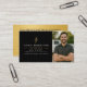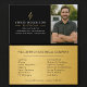 Modern black and gold metal style business card for electricians and electrical contractors. Designed to add a personal photo while presenting contact details with a bold, professional look. Ideal for service calls, estimates, and referrals. Editable text and photo. Clean print-ready layout.