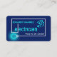 An all blue cover features a creative "electrician" wire circuit. The circuit is drawing power from your prestigious name at the top. To the right side of your name is a "letter-e" home circuit logo you can use. ; The letter-e can represent your prestigious name, business name etc. The contact details can be found near the base of the card.