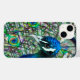 Electrified Peacock with Electrified blue feathers expanded as he hold his blue head up and looks at you