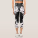 Electrifying black white sparkly triangle flames capri leggings