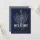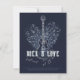 This dark blue music fedtival invitation card design features a sketch of an electro-guitar placed in front of a heart made of musical notes. You can customise the festival name, and details.