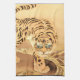 A ‘Minhwa’ represents Korean folklore created by unknown artists over centuries. The tiger is a figure associated with the Korean culture and an ugly or misshapen animal can represent foolish or corrupt aristocrats according to legend. This vintage painting depicts a striped minhwa tiger by a stream.