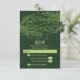Green computer circuit board Bar Mitzvah RSVP card. This non-traditional computer motherboard or electronics inspired design features circuitry as you'd see on an electronic circuit board. These elements are paired with digital computer techno fonts. The colours are various shades of green from a light lime green to a deep forest green.