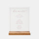 This elegant bar menu design exudes a sophisticated and timeless charm, perfect for wedding receptions or formal events. The minimalist layout features an understated color palette with soft pink text on a clean white background, complemented by a touch of wood grain at the base, adding warmth and texture. The typography is refined and cursive, enhancing the overall sense of elegance and refinement. Ideal for couples seeking to create an inviting yet classy atmosphere, this menu seamlessly blends functionality with aesthetic appeal, ensuring it stands out as a stylish addition to any special occasion.